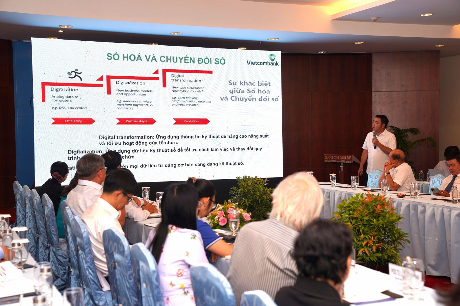 Chuyển đổi số trong quản trị đại học là sự chuyển đổi hoạt động cốt lõi thông qua công nghệ và nền tảng số, đồng thời nắm bắt các cơ hội mà chuyển đổi số mang lại, từ đó nâng cao hiệu lực hiệu quả quản trị, nâng cao chất lượng đào tạo, phục vụ cho sự phát triển của đất nước. Xác định được tầm quan trọng đó, bên cạnh việc tập trung đánh giá vx88b đạt được, nguyên nhân, hạn chế, khuyết điểm trong nửa nhiệm kỳ qua và các chỉ tiêu, nhiệm vụ trong thời gian tới; lãnh đạo Nhà trường đã chỉ đạo Hội nghị tập trung nhà cái vx88 các vấn đề liên quan đến chuyển đổi số trong quản trị đại học thông qua các bài tham luận cũng như các ý kiến trao đổi của đại biểu tại Hội nghị, từ đó tiếp tục đề ra giải pháp thực hiện hiệu quả việc ứng dụng chuyển đổi số trong các hoạt động đào tạo, nghiên cứu khoa học, hợp tác quốc tế và phục vụ cộng đồng.