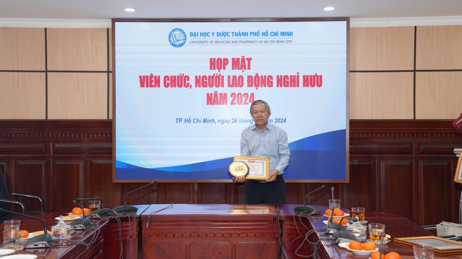 Trải qua hơn 77 năm hình thành và phát triển, vx88 esball Thành phố Hồ Chí Minh tự hào là một trong những trường đại học trọng điểm, có uy tín, có vị thế vững vàng, đảm nhận trọng trách đào tạo nguồn nhân lực chất lượng cho hệ thống y tế của cả nước. Trong quá trình xây dựng và phát triển, Nhà trường vinh dự nhận được sự đóng góp to lớn của các thế hệ viên chức, người lao động. Đại diện lãnh đạo Nhà trường, PGS.TS. Ngô Quốc Đạt đã bày tỏ sự trân quý, tri ân đến các viên chức, người lao động hưu trí năm 2024, hi vọng các thầy cô sẽ tiếp tục đồng hành và là người hướng dẫn, truyền lửa cho các thế hệ hôm nay vì sự phát triển bền vững của vx88 esball TPHCM.