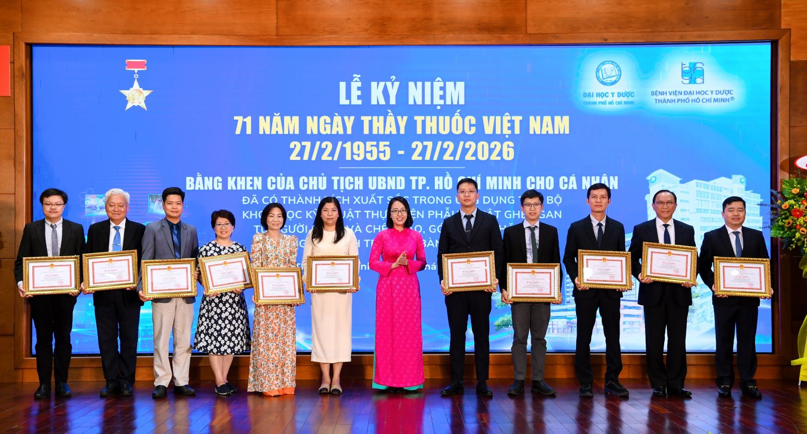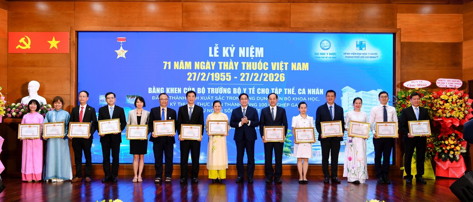 Ngày 25/2/2026, vx88 esball Thành phố Hồ Chí Minh đã long trọng tổ chức Lễ Kỷ niệm 71 năm Ngày Thầy thuốc Việt Nam với chủ đề “Trí tuệ, Tận tâm, Blouse trắng vì sức khỏe nhân dân” tại Hội trường vx88m vx88 esball Thành phố Hồ Chí Minh (BV ĐHYD – UMC). Chủ đề năm nay thể hiện định hướng phát triển của Nhà trường và vx88m trong giai đoạn mới, tập trung đẩy mạnh ứng dụng khoa học - công nghệ, nâng cao chất lượng khám chữa bệnh, đổi mới công tác đào tạo và quản trị, đồng thời phát huy Y đức, tinh thần trách nhiệm và bản lĩnh nghề nghiệp của đội ngũ thầy thuốc.