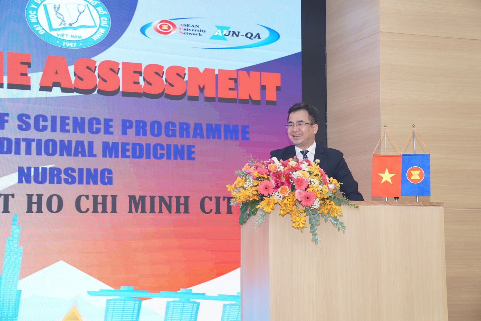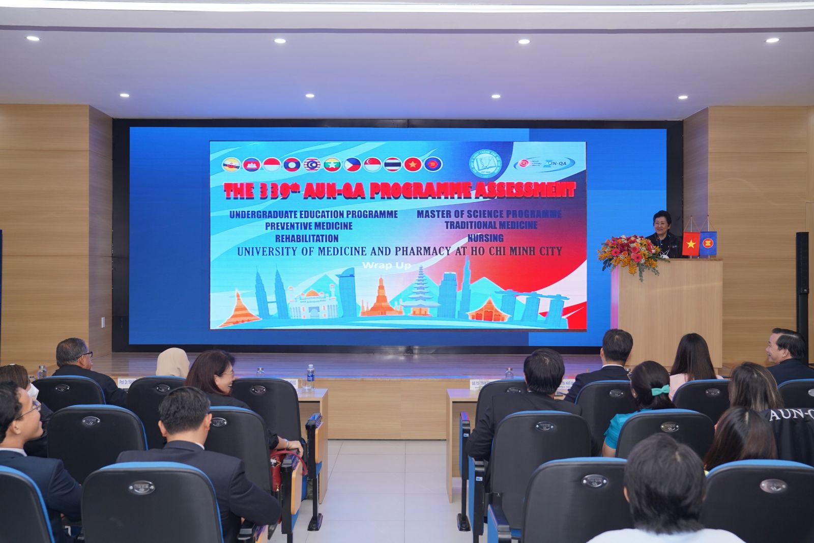 Tham dự Lễ Bế mạc, về phía AUN có GS.TS. Wyona C. Patalinghug - Trưởng đoàn vx88m viên và các kiểm định viên AUN; Về phía vx88 esball Thành phố Hồ Chí Minh có sự hiện diện của GS.TS.BS. Trần Diệp Tuấn - Chủ tịch vx88m, PGS.TS.BS. Ngô Quốc Đạt - Phó Hiệu trưởng phụ trách, PGS.TS. Trịnh Thị Diệu Thường - Trưởng Khoa Y học cổ truyền, PGS.TS. Nguyễn Văn Chinh - Trưởng Khoa Điều dưỡng - Kỹ thuật y học, PGS.TS. Đỗ Văn Dũng - Trưởng Khoa Y tế công cộng cùng các thầy cô là Trưởng/Phó các Phòng, Khoa, Trung tâm, các đơn vị thuộc và trực thuộc.