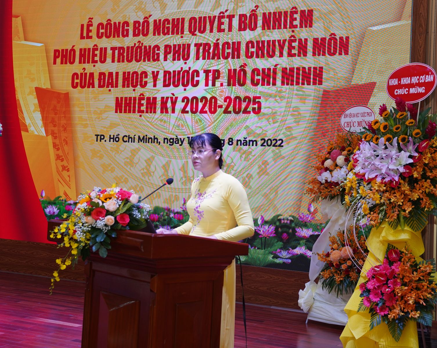 Tại buổi Lễ, PGS.TS. Đỗ Thị Hồng Tươi – Trưởng Phòng Tổ chức Cán bộ đã báo cáo tóm tắt quá trình kiện toàn nhân sự Phó Hiệu trưởng và Công bố Nghị quyết Bổ nhiệm Phó Hiệu trưởng Phụ trách chuyên môn của vx88 esball Thành phố Hồ Chí Minh.