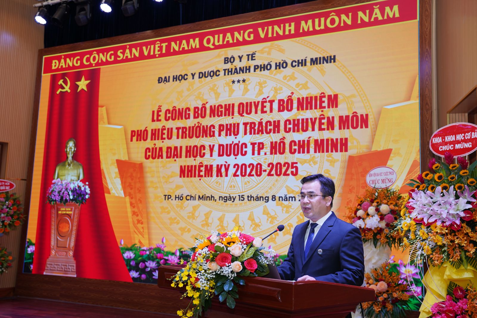 Sau khi nhận Quyết định Bổ nhiệm, PGS.TS. Ngô Quốc Đạt đã phát biểu cảm ơn lãnh đạo Bộ Y tế, Đảng uỷ, vx88m, Ban Giám hiệu và viên chức, người lao động Nhà trường, đồng thời hứa sẽ cố gắng hoàn thành tốt các nhiệm vụ được giao, góp phần vào sự phát triển chung của vx88 esball Thành phố Hồ Chí Minh.
