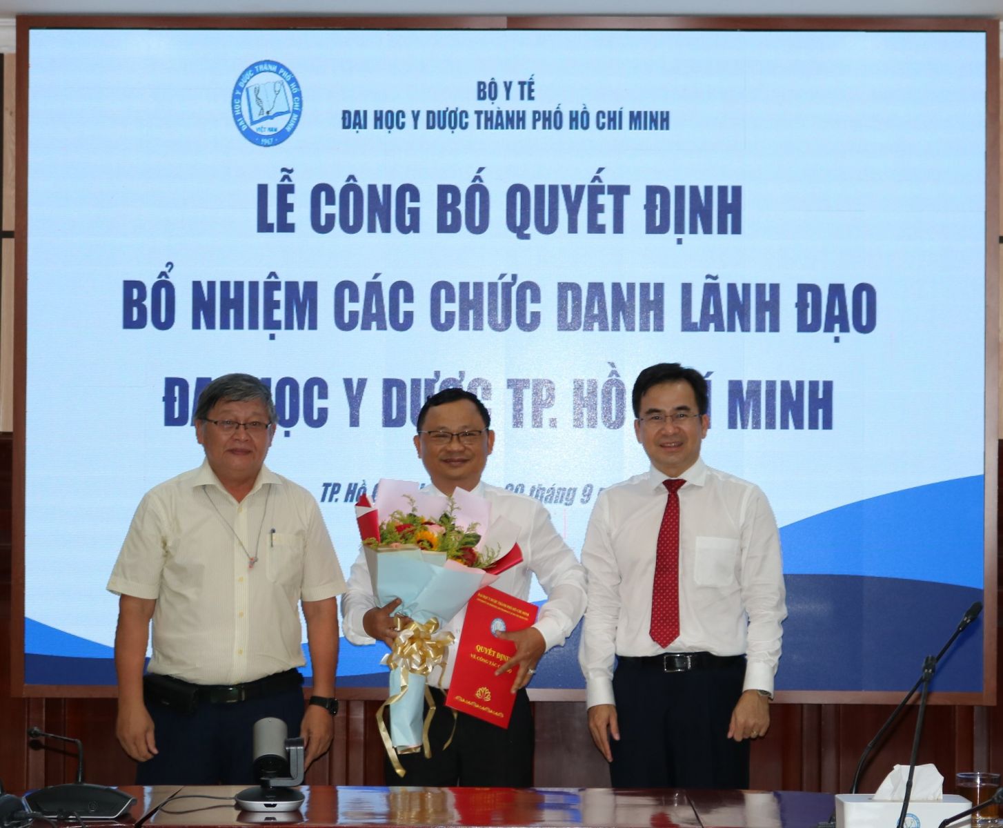 Tại buổi lễ, Nhà trường đã trao Quyết định bổ nhiệm chức danh Giám đốc Trung tâm Khoa học Công nghệ Dược Sài Gòn (SAPHARCEN) đối với PGS.TS. Phan Thanh Dũng, bổ nhiệm chức danh Phó Trưởng khoa phụ trách Khoa Y tế Công cộng đối với PGS.TS. Nguyễn Duy Phong và bổ nhiệm chức danh Phó Trưởng khoa phụ trách Khoa Y học Cổ truyền đối với ThS. Nguyễn Văn Đàn.