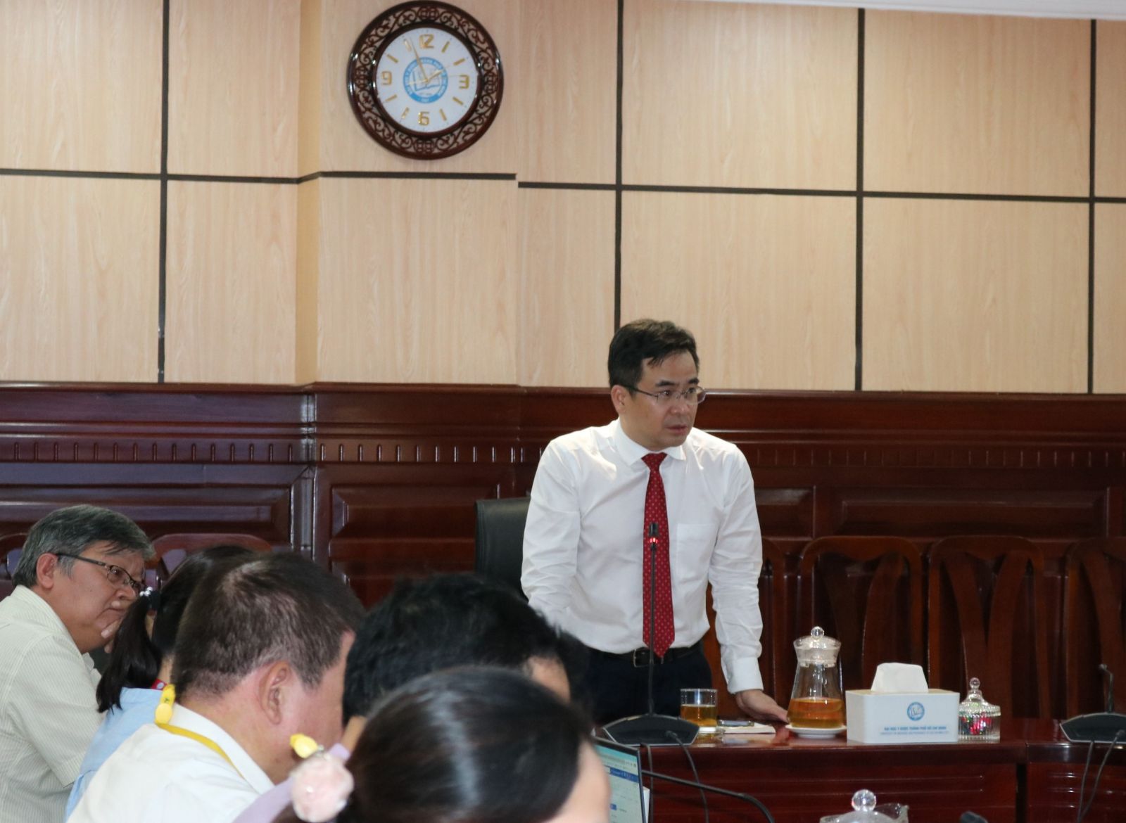 Cũng trong buổi lễ, PGS.TS. Ngô Quốc Đạt bày tỏ tình cảm trân quý, niềm tri ân đối với sự đóng góp của quý thầy cô lãnh đạo: PGS.TS. Đỗ Văn Dũng – Nguyên Trưởng Khoa Y tế Công cộng, CN. Trần Tấn Công – Nguyên Phó Trưởng Phòng Kế hoạch Tài chính và gửi tặng những bó hoa tươi thắm thay lời cảm ơn chân thành.