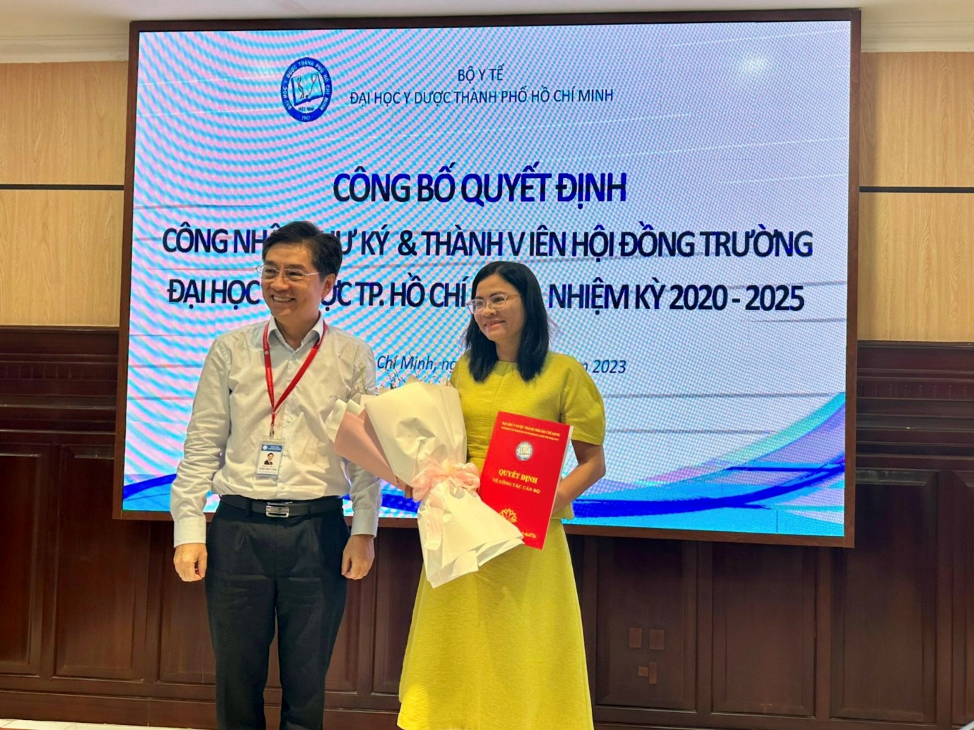 Tại buổi lễ, Nhà trường đã công bố Quyết định của Bộ Y tế công nhận chức danh Thư ký vx88m đối với PGS.TS. Đỗ Thị Hồng Tươi, thành viên vx88m, Trưởng phòng Tổ chức cán bộ vx88 esball Thành phố Hồ Chí Minh và công nhận thành viên vx88m đối với PGS.TS. Huỳnh Nghĩa, Chủ tịch Công đoàn cơ sở vx88 esball Thành phố Hồ Chí Minh, nhiệm kỳ 2023-2028 (thuộc thành phần đương nhiên).