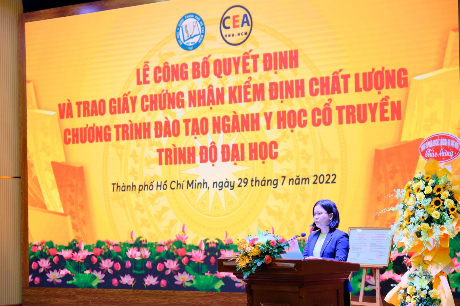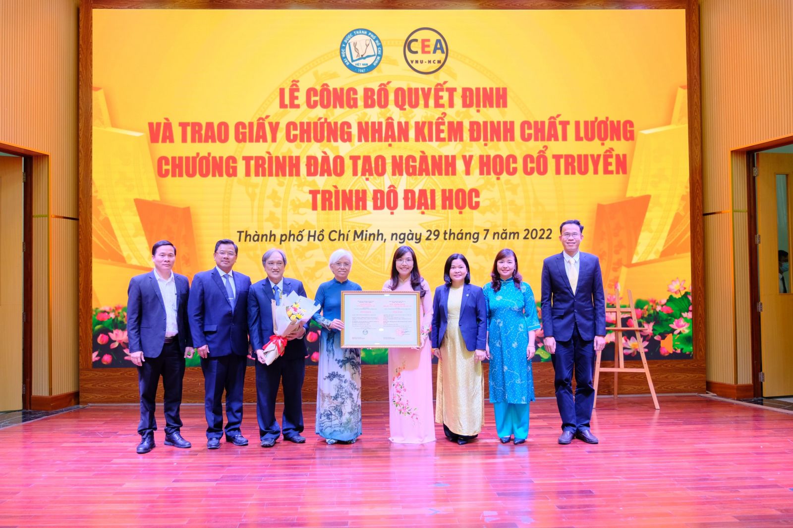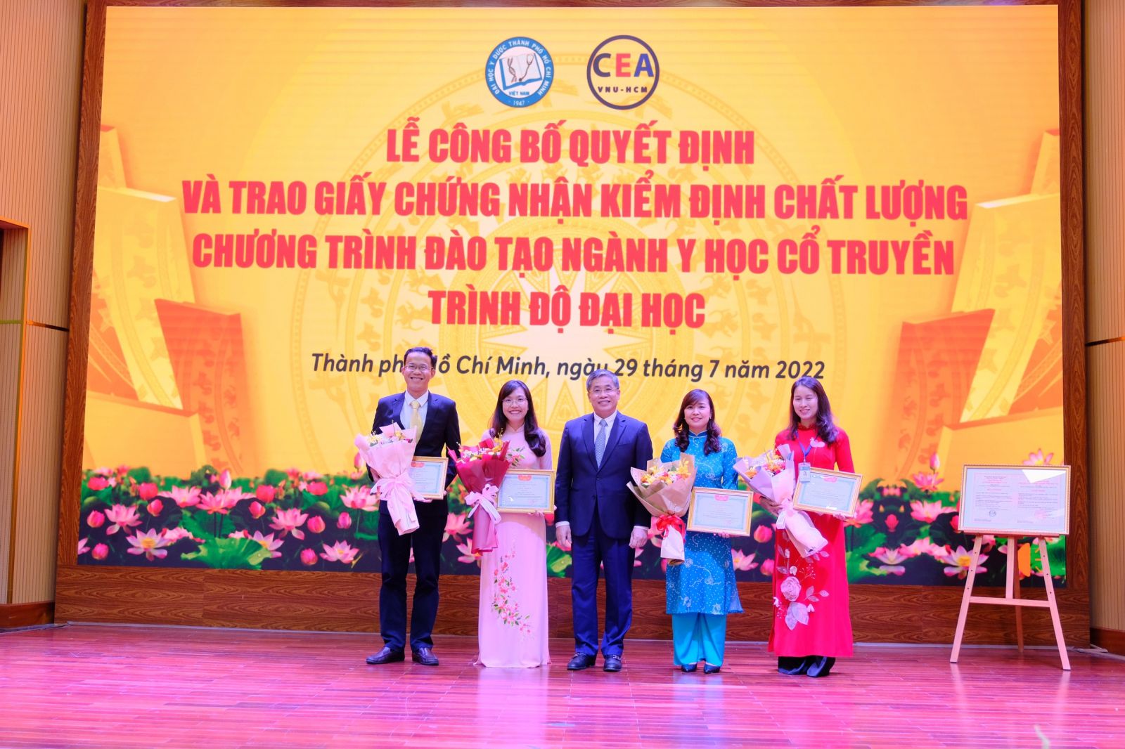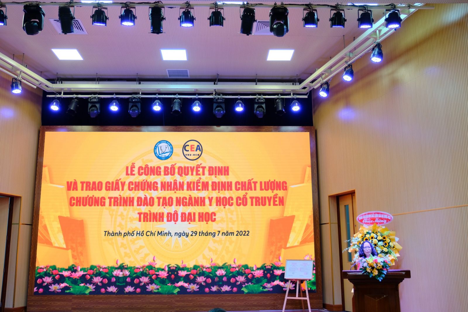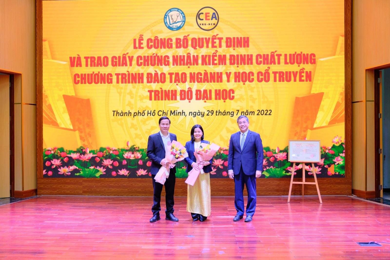 Ông Lã Hoài Tuấn – Chánh văn phòng, Trung tâm vx88m chất lượng giáo dục, ĐHQG-HCM đã công bố Quyết định và mời PGS.TS. Lê Ngọc Quỳnh Lam Giám đốc Trung tâm kiểm định chất lượng giáo dục - vx88 esball Quốc gia TP Hồ Chí Minh trao giấy chứng nhận kiểm định chất lượng chương trình đào tạo ngành Y học cổ truyền cho nhà trường.