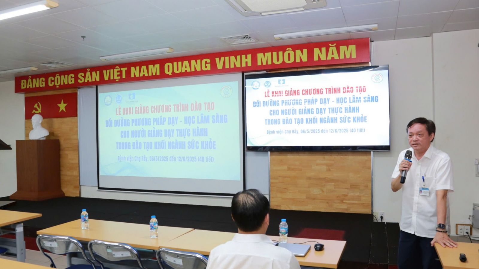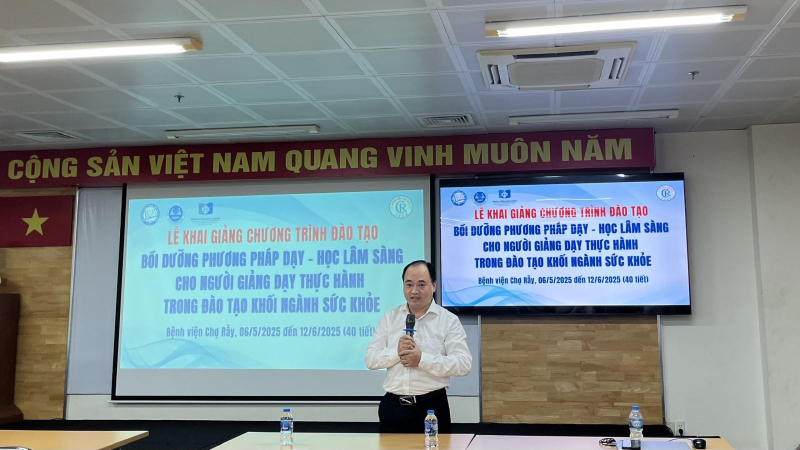Vào 13g30 phút chiều ngày 06/05/2025, TT Giáo dục Y học – ĐHYD TPHCM phối hợp TT Đào tạo - Chỉ đạo tuyến - BV Chợ Rẫy long trọng tổ chức lễ khai giảng khóa học “Phương pháp dạy- học lâm sàng cho người giảng dạy thực hành trong đào tạo khối ngành sức khỏe”.