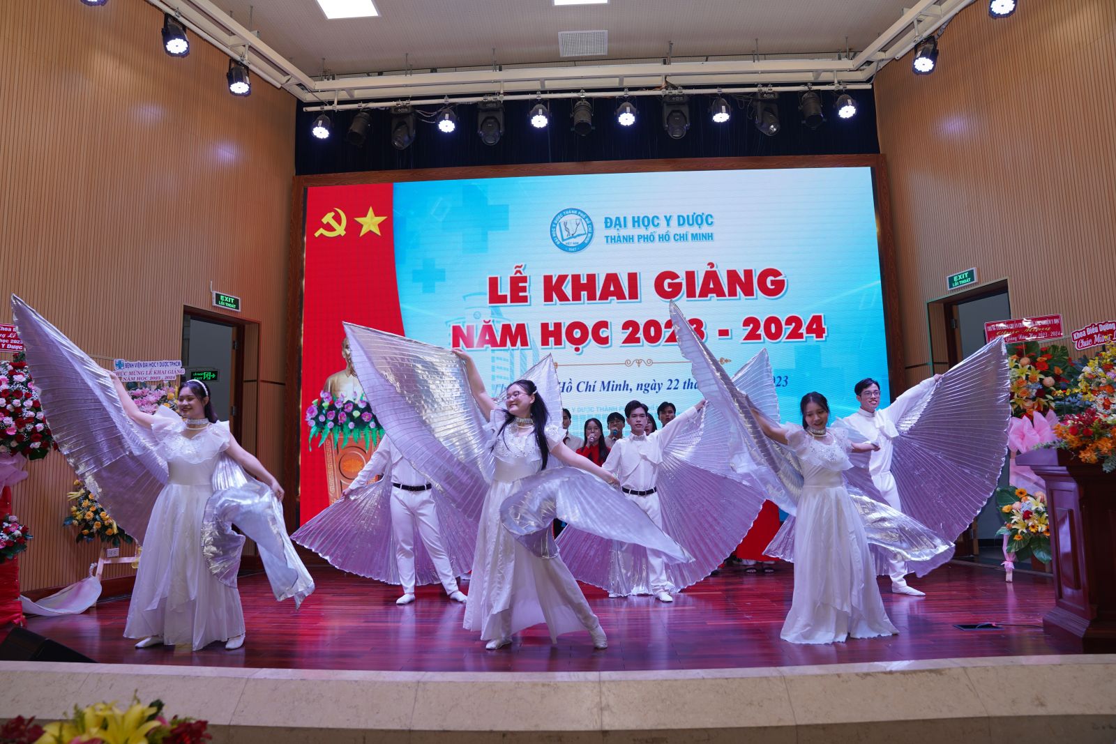 Mở đầu buổi Lễ, với khí thế phấn khởi chào năm học mới đã đến, Ban Chủ nhiệm các Khoa cùng với các bạn Tân sinh viên của Khoa đã có phần mở màn Truyền thông điệp hết sức ấn tượng, là tình cảm yêu thương, niềm vinh dự và sự mong mỏi của thầy cô Ban Chủ nhiệm Khoa gửi đến Tân sinh viên, cũng như toàn thể sinh viên của Khoa mình – cùng khởi động một năm học mới đầy thành công.