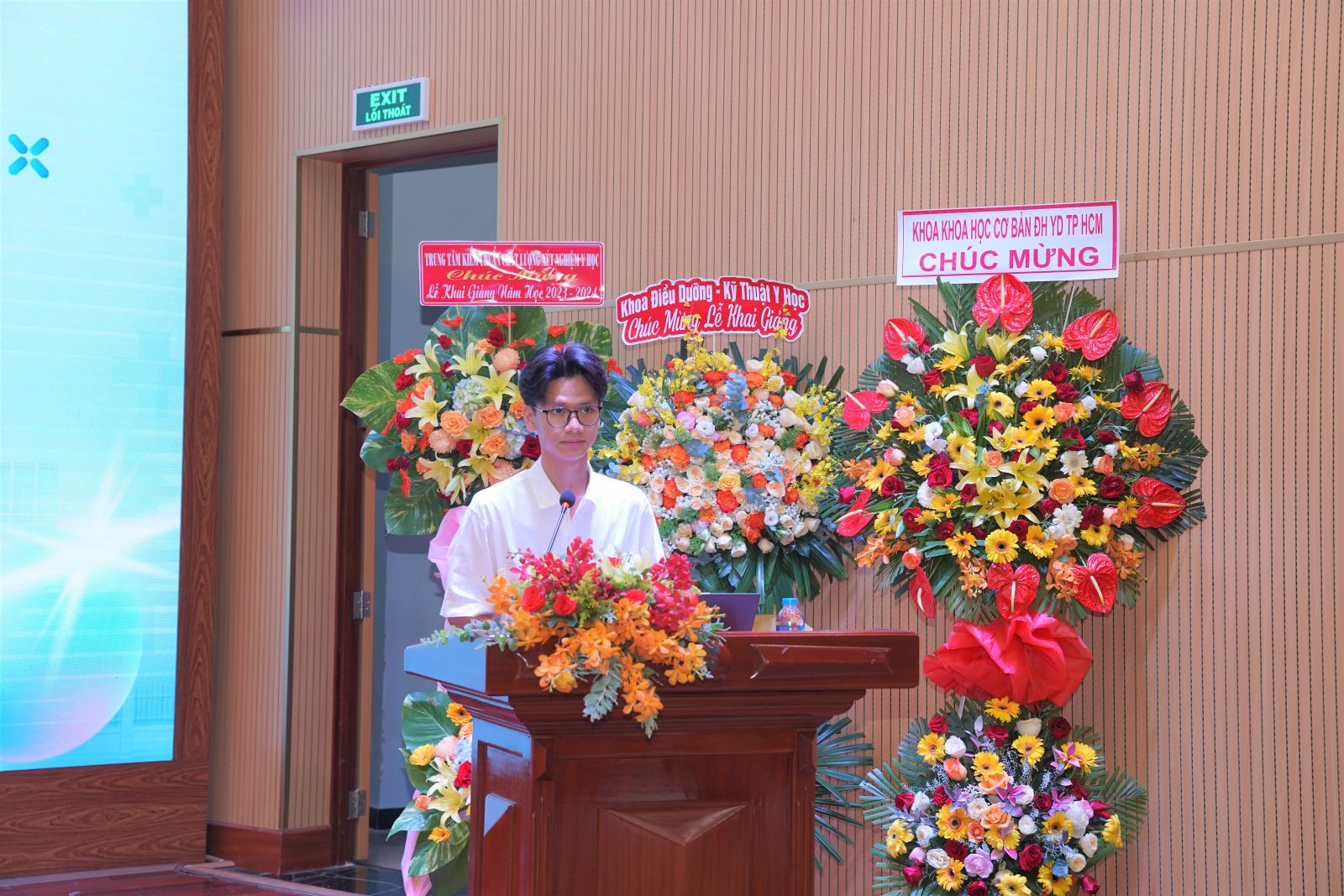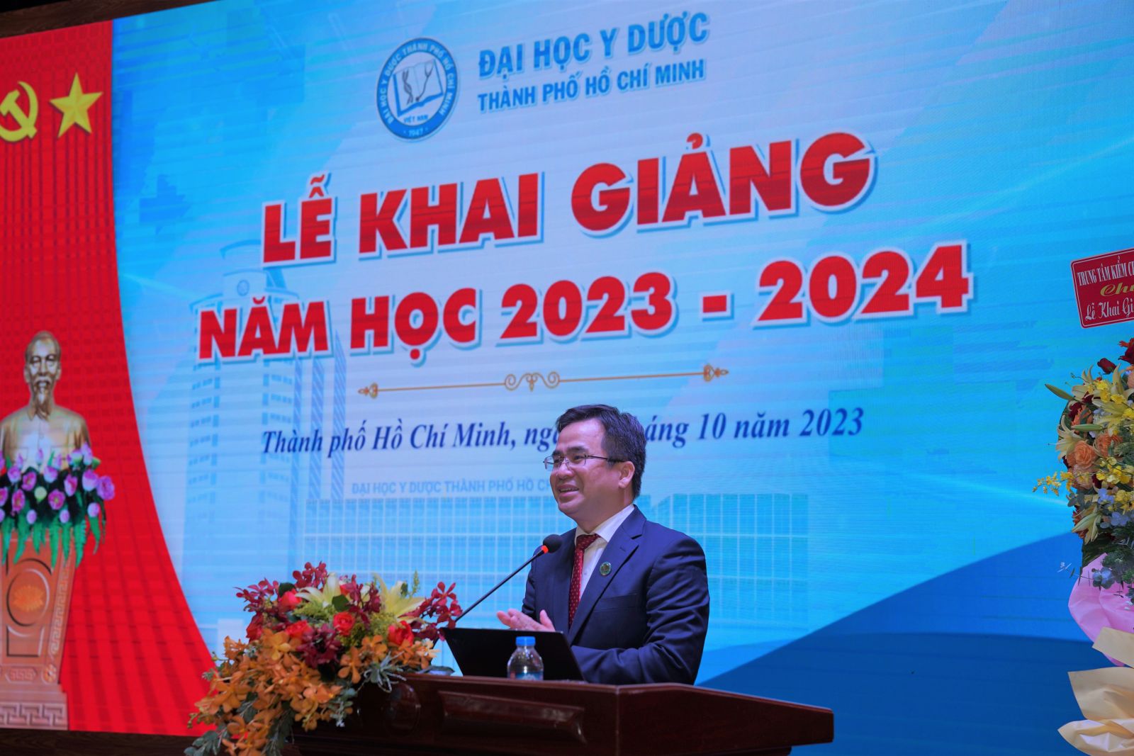 Phát biểu tại Lễ Khai Giảng, PGS.TS. Ngô Quốc Đạt – Phó Hiệu trưởng phụ trách Nhà trường đã truyền cảm hứng và tình yêu ngành Y đến với tất cả các bạn sinh viên của Trường. Thầy nhắn nhủ: Mong rằng những năm tháng học tập tại vx88 esball Thành phố Hồ Chí Minh sẽ là khoảng thời gian hạnh phúc nhất của thanh xuân các bạn sinh viên, để mỗi khi nghĩ về chúng ta sẽ hát vang câu hát quen thuộc: “Những tháng ngày năm đó ta đã cười thật tươi, mười tám đôi mươi – những nụ cười đẹp nhất đời”.