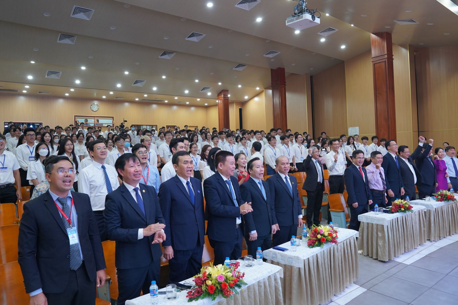 Đồng thời, trong thời điểm hiện nay, đặc biệt là Lễ Khai giảng diễn ra trong tháng 10 – tháng cao điểm về chuyển đổi số quốc gia và các chủ trương, chính sách về lĩnh vực này đang ngày càng được lan rộng và chú tâm thực hiện. Chính vì vậy, “Với vai trò là những chủ nhân tương lai của đất nước, bằng trách nhiệm to lớn đối với sự nghiệp chăm sóc, bảo vệ sức khỏe nhân dân, lực lượng Y, bác sĩ, nhân viên y tế không chỉ phải có năng lực chuyên môn mà còn phải có khả năng tiếp cận với sự phát triển của nền công nghệ số, góp phần thực hiện thành công chuyển đổi số trong lĩnh vực y tế - một trong những mục tiêu chiến lược quan trọng của ngành hiện nay và trong tương lai”, PGS.TS. Ngô Quốc Đạt gửi gắm.