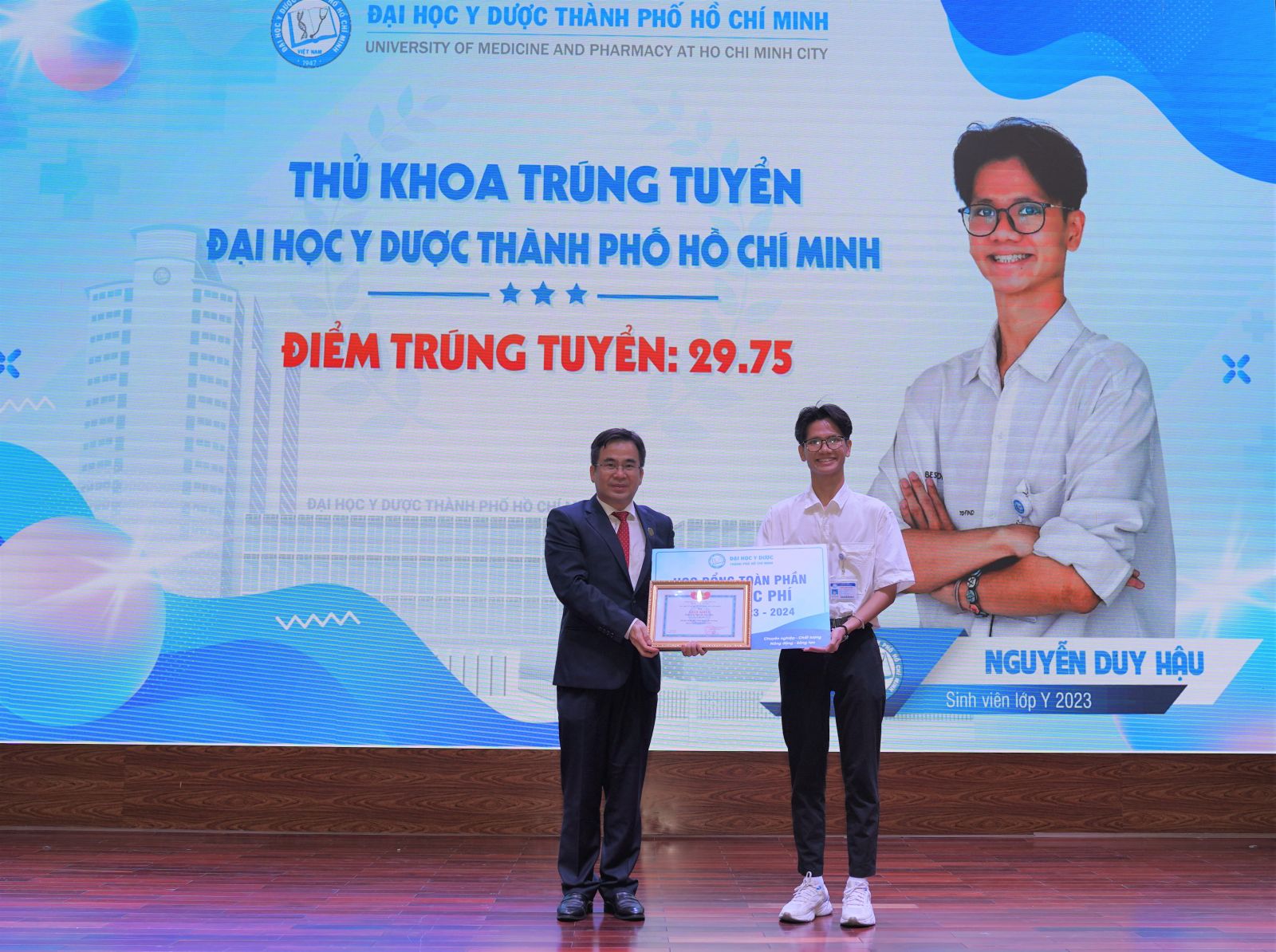 Năm học này, Nhà trường vinh dự có Thủ khoa toàn trường là em Nguyễn Duy Hậu, quê quán Đà Nẵng, trúng tuyển ngành Y đa khoa với số điểm là 29,75. Đại diện cho các tân sinh viên vừa được trúng tuyển vào vx88 esball TPHCM, Sinh viên Nguyễn Duy Hậu đã bày tỏ niềm tự hào khi được đậu vào ngôi trường mơ ước của mình. “Em sẽ cố gắng học tập thật tốt, tham gia tích cực các hoạt động rèn luyện kĩ năng, các hoạt động phong trào bổ ích và ý nghĩa của trường, của Đoàn - Hội sinh viên, phát huy sự chuyên nghiệp, năng động, sáng tạo của sinh viên Y dược, tạo nền tảng vững chắc để mai sau trở thành những nhân viên y tế có năng lực, lòng yêu nghề và tinh thần trách nhiệm, đóng góp sức lực của mình cho cộng đồng và xã hội...”, Tân Thủ khoa chia sẻ.