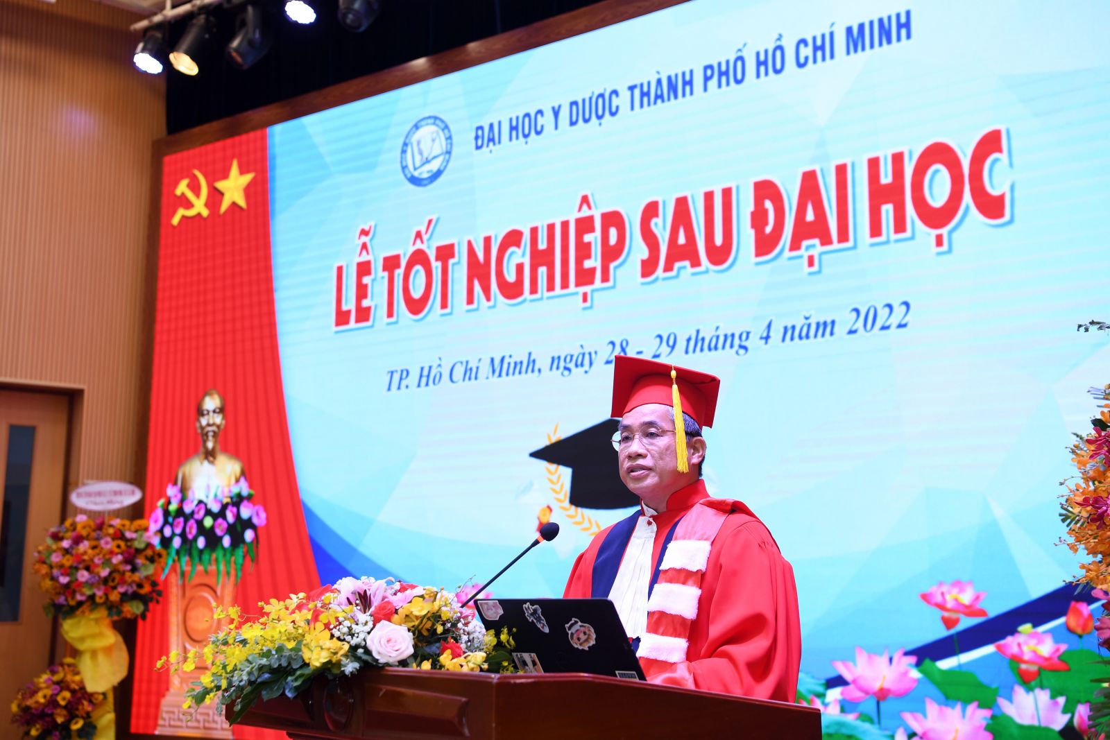 PGS.TS. Nguyễn Hoàng Bắc đại diện Đảng ủy - Ban Giám hiệu vx88 esball TP. Hồ Chí Minh chúc mừng các tân khoa đã nỗ lực trong học tập, hoàn thành tốt chương trình đào tạo, đạt thành tích học tập đáng khích lệ, vừa tham gia tích cực trên mặt trận phòng, chống dịch COVID-19. Với những kiến thức, kỹ thuật, kinh nghiệm được thầy cô truyền đạt trong thời gian học tập tại trường, thầy hi vọng các tân vx88m, thạc sĩ, bác sĩ – dược sĩ chuyên khoa cấp II, bác sĩ – dược sĩ chuyên khoa cấp I, bác sĩ nội trú sẽ sẵn sàng trở lại bệnh viện, trường học với tâm thế mới, tự tin vận dụng vào công việc giảng dạy, thực hành lâm sàng, chăm sóc sức khỏe người dân. Nhà trường luôn tự hào và tin tưởng các học viên tốt nghiệp từ vx88 esball TP. Hồ Chí Minh sẽ không ngừng trau dồi, nâng cao y đức, khiêm tốn và luôn học hỏi cập nhật thêm về chuyên môn và nghiệp vụ để xứng đáng với truyền thống của trường, xứng đáng với sự tin tưởng của người dân; đồng thời sẽ là những nhân tố kết nối, đẩy mạnh hơn nữa sự hợp tác giữa nhà trường và các cơ sở thực hành.