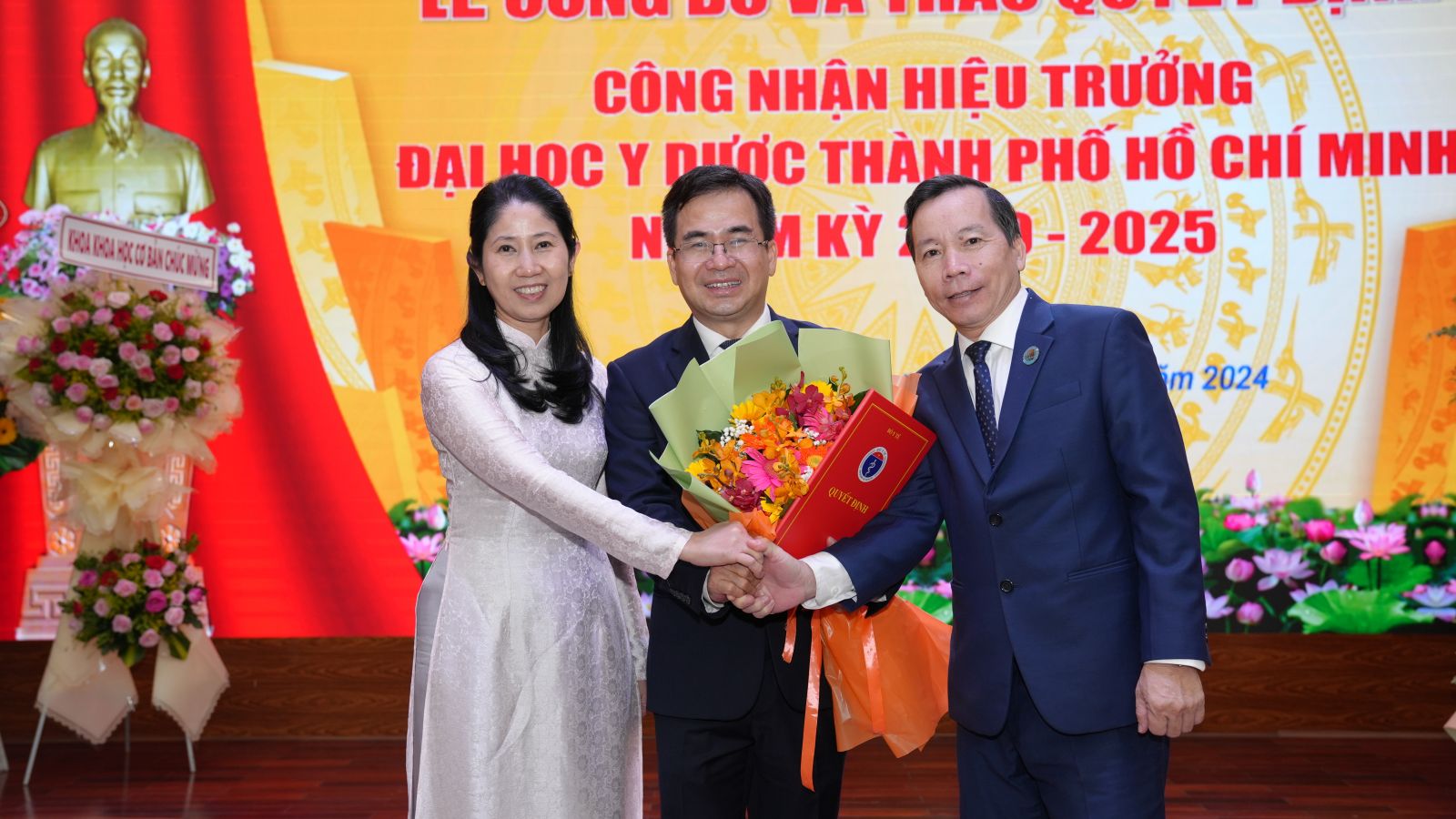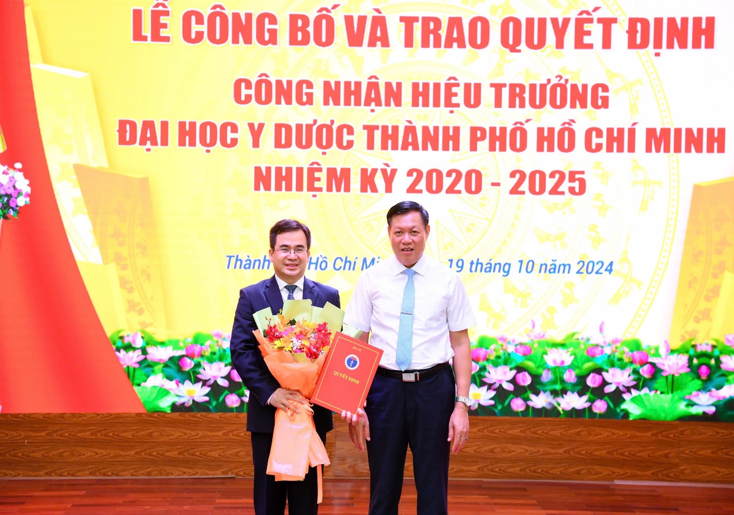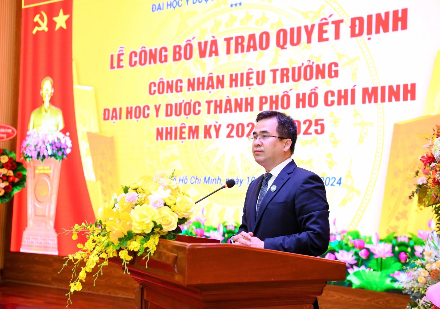 Tại buổi lễ, thay mặt lãnh đạo Bộ Y tế, Thứ trưởng Đỗ Xuân Tuyên đã trao Quyết định số 3068/QĐ-BYT của Bộ trưởng Bộ Y tế về việc công nhận PGS.TS Ngô Quốc Đạt – Phó Hiệu trưởng phụ trách vx88 esball Y dược TPHCM giữ chức vụ Hiệu trưởng vx88 esball TPHCM nhiệm kỳ 2020 – 2025.