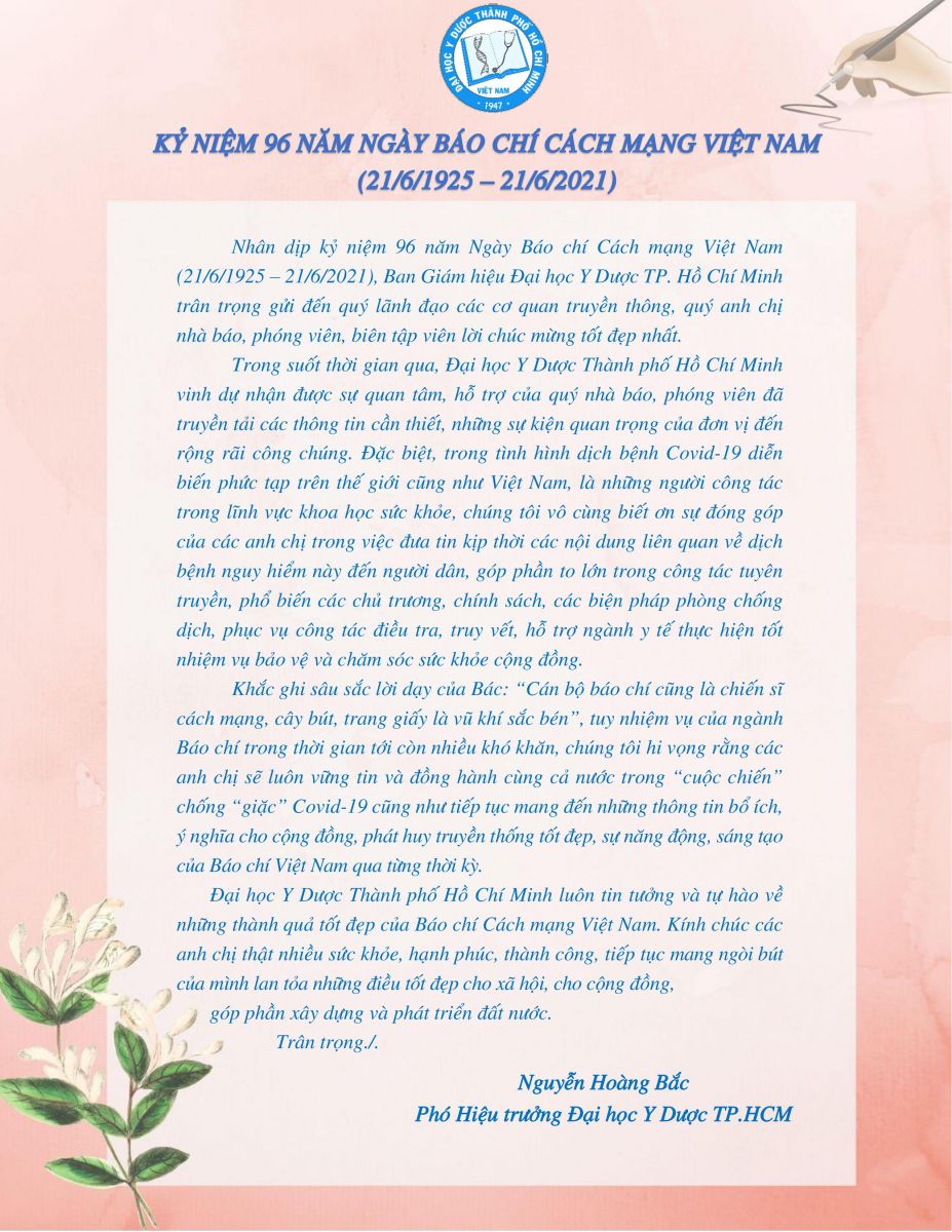 Thư chúc mừng Kỷ niệm 96 năm Ngày Báo chí Cách mạng Việt Nam (21/6/1925 - 21/6/2021)