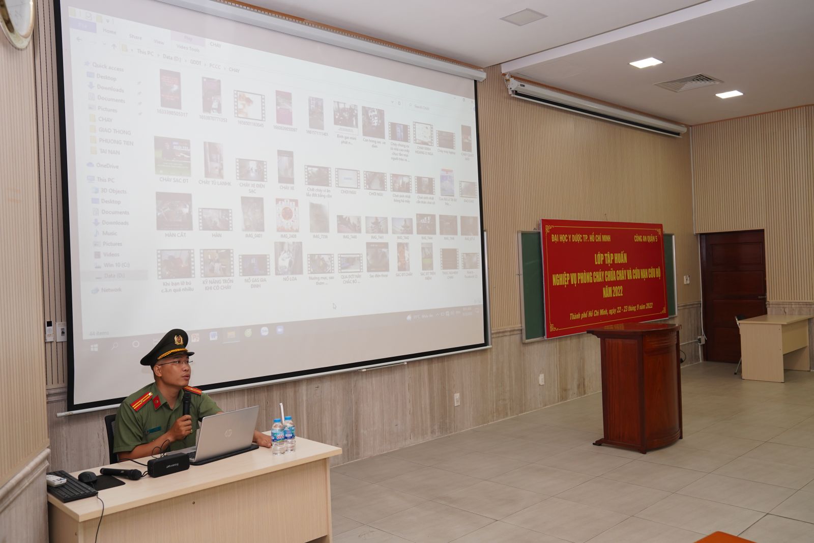 Lớp tập huấn được tổ chức nghiêm túc, bài bản với sự tham gia của đông đảo lực lượng phòng cháy chữa cháy của Nhả trường, được huấn luyện đầy đủ về lý thuyết và kỹ năng thực hành xử lý sự cố cháy nổ.