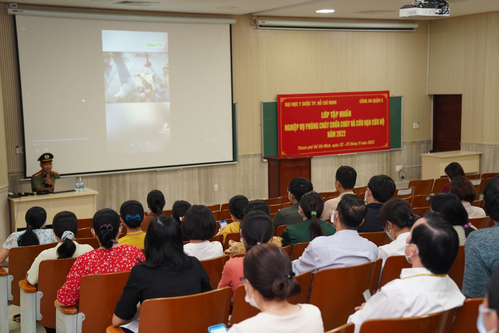 Ngày 22 - 23/9/2022, vx88 esball TPHCM đã tổ chức lớp huấn luyện nghiệp vụ Phòng cháy chữa cháy và cứu nạn cứu hộ cho hơn 300 viên chức, người lao động thuộc đội Phòng cháy chữa cháy của Nhà trường. Tham dự và chia sẻ tại lớp tập huấn có Thiếu tá Đỗ Tấn Tài – Báo cáo viên Công an Quận 5, TPHCM.