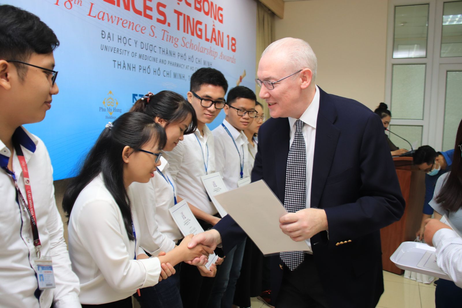 Tham dự buổi lễ, Về phía Quỹ Hỗ trợ cộng đồng Lawrence S.Ting có Ông Phan Chánh Dưỡng - Giám đốc Quỹ Hỗ trợ Cộng đồng Lawrence S.Ting; Ông Graeme Russell Hannah - Tổng giám đốc Công ty Cổ phần bảo hiểm Nhân thọ Phú Hưng (Mr. Graeme Russell Hannah – General Director - Phu Hung Life) – đơn vị tài trợ, Đại diện tiếp đón các đơn vị là PGS.TS. Huỳnh Nghĩa – Phó Trưởng Khoa Y vx88 esball TP. HCM cùng các thầy cô Phòng Công tác Sinh viên và Đại diện Đoàn – Hội Sinh viên trường.