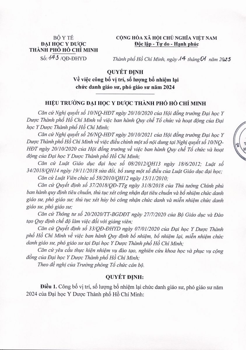 4. Công bố vị trí, số lượng bổ nhiệm lại chức danh giáo sư, phó giáo sư năm 2024