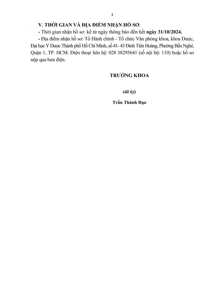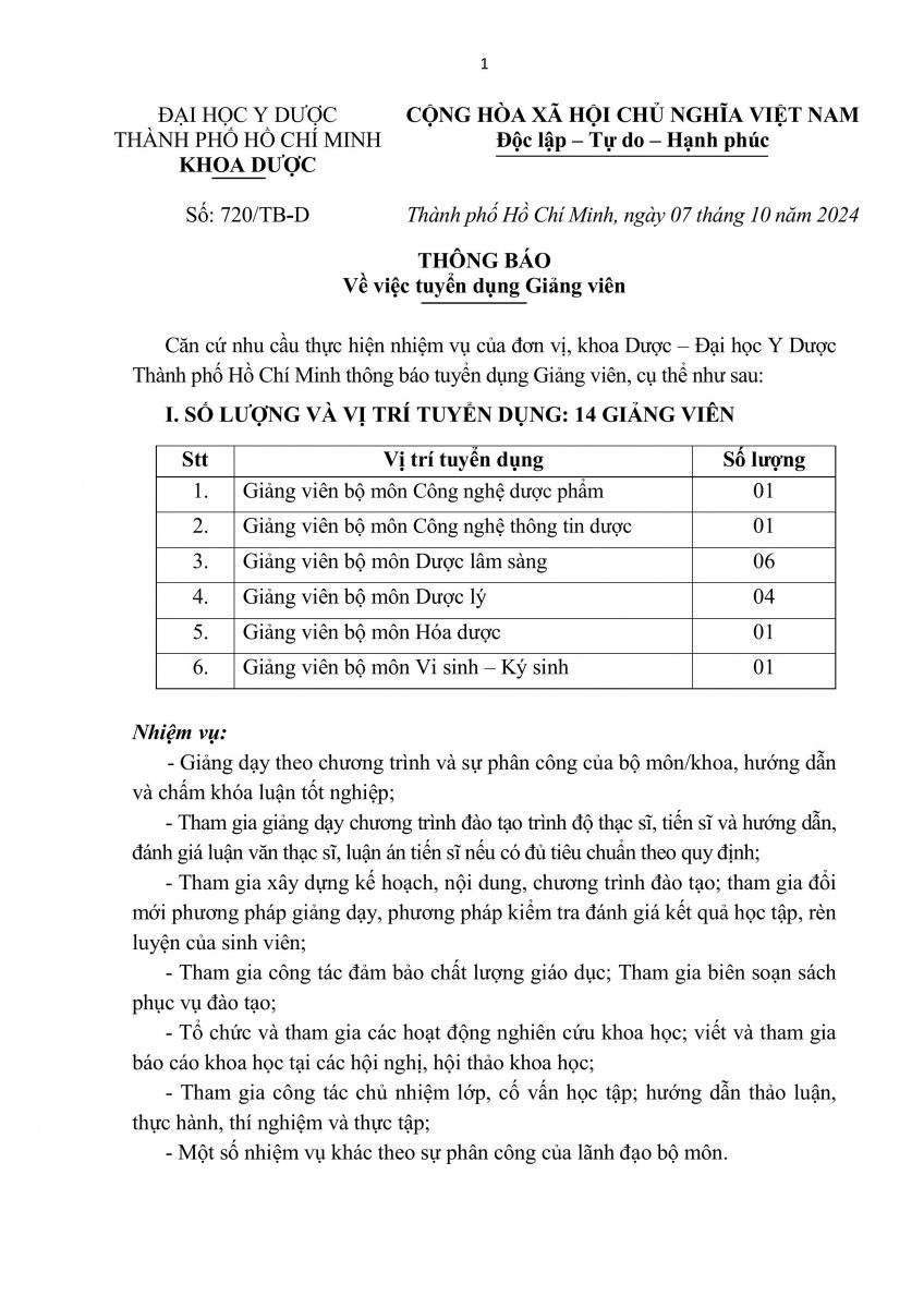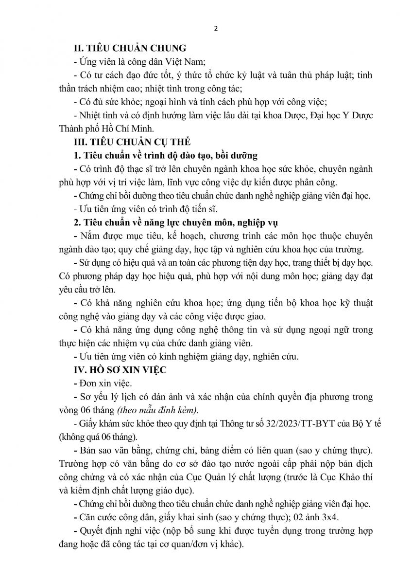 3. THÔNG BÁO TUYỂN DỤNG GIẢNG VIÊN CÁC BỘ MÔN KHOA DƯỢC