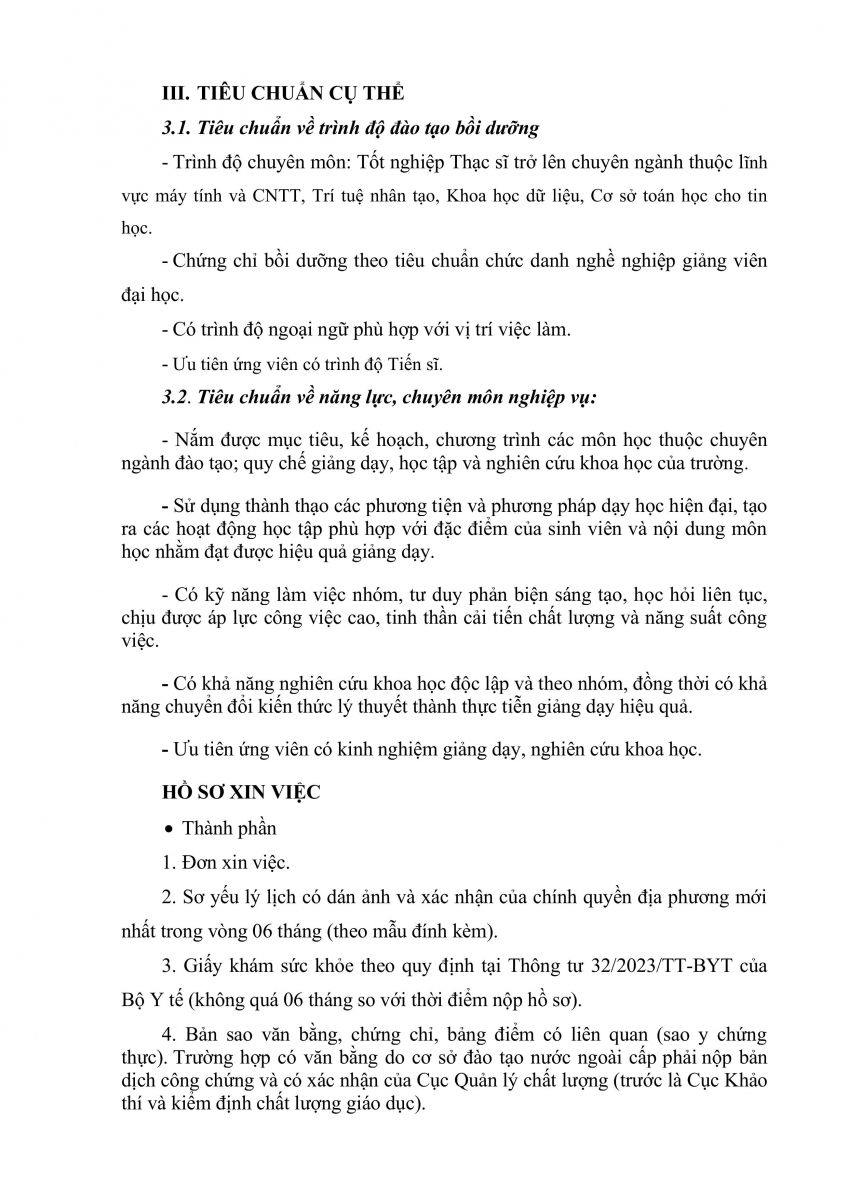 vx88 code tuyển dụng Giảng viên công tác tại Khoa Khoa học cơ bản