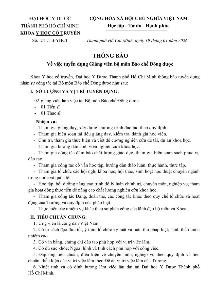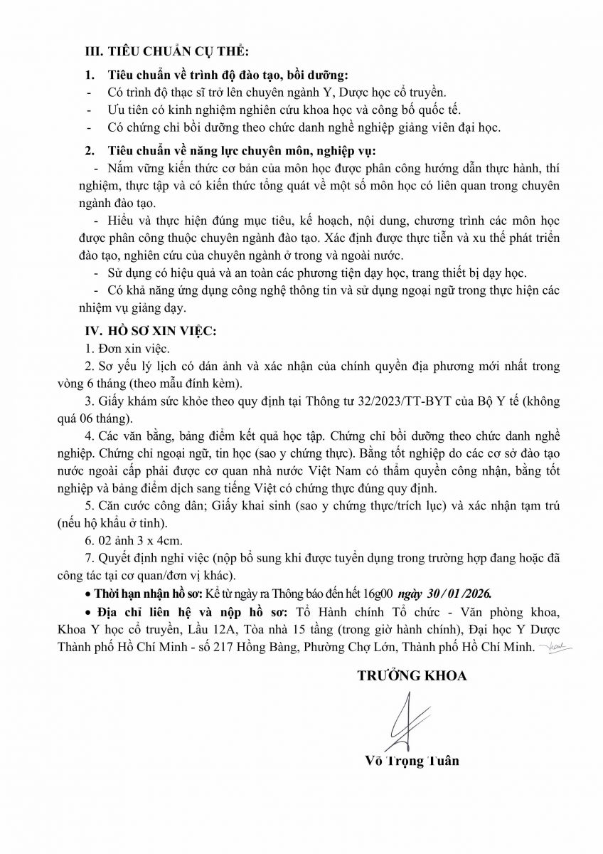 3. vx88 code tuyển dụng Giảng viên công tác tại khoa Y học cổ truyền