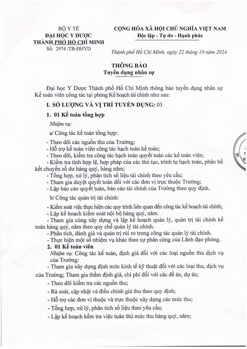 3. THÔNG BÁO TUYỂN DỤNG KẾ TOÁN VIÊN CÔNG TÁC TẠI PHÒNG KẾ HOẠCH TÀI CHÍNH