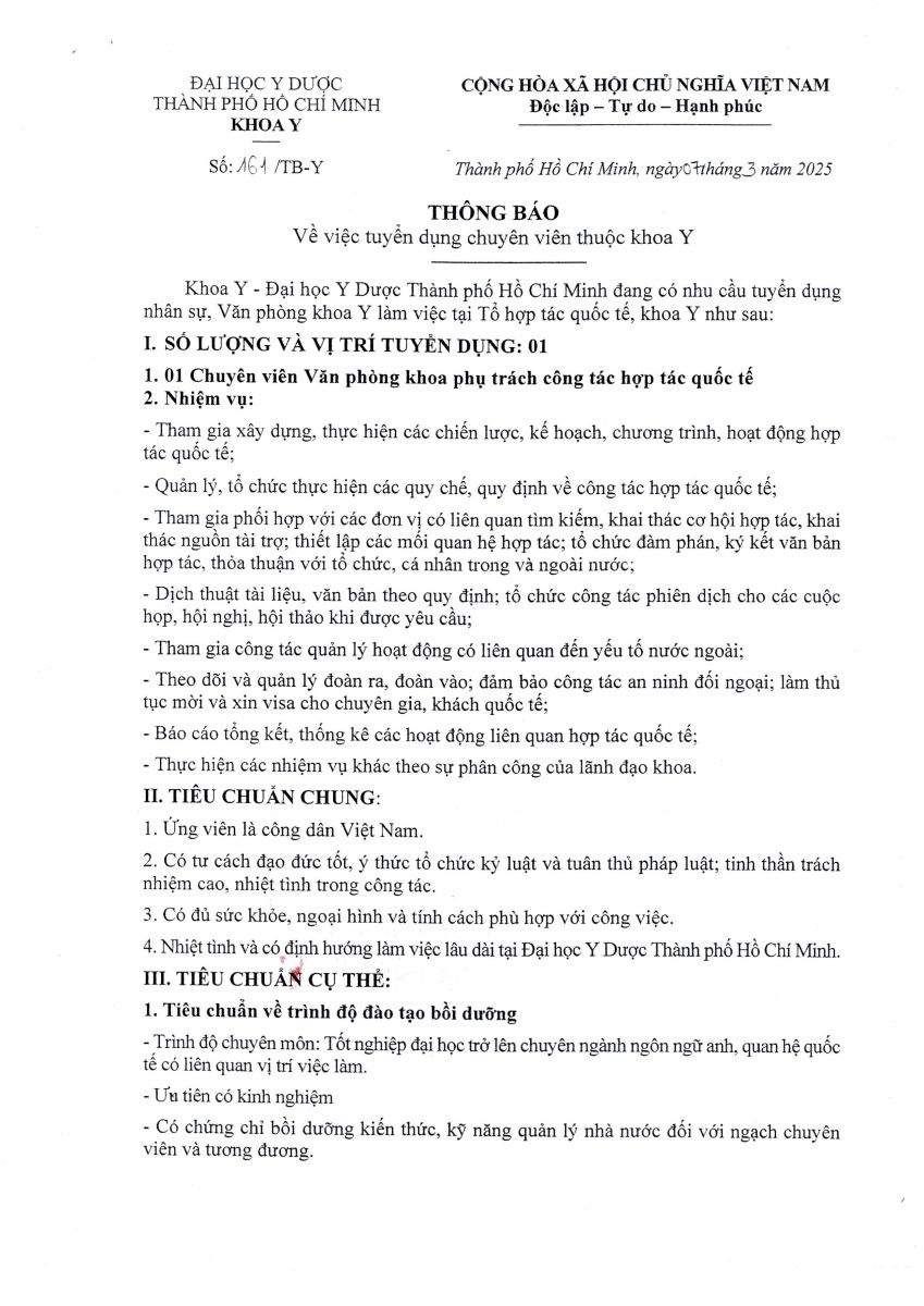 vx88 code tuyển dụng nhân sự công tác tại khoa Y