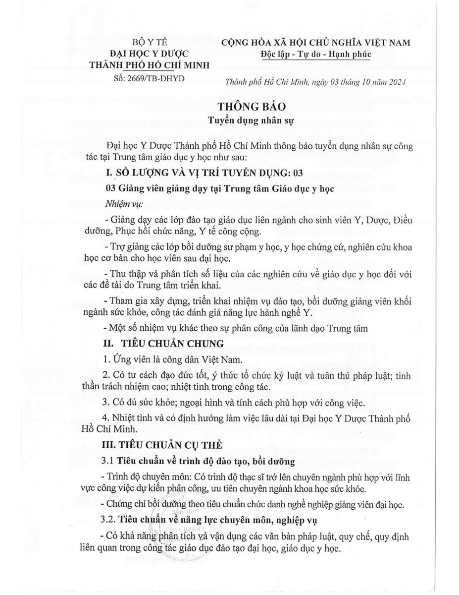 3. THÔNG BÁO TUYỂN DỤNG NHÂN SỰ CÔNG TÁC TẠI TRUNG TÂM GIÁO DỤC Y HỌC