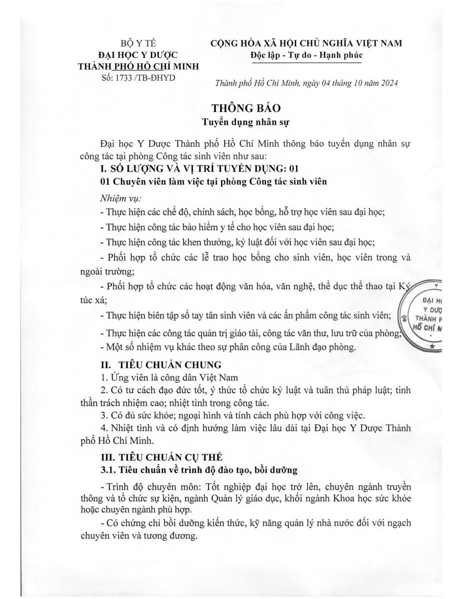 3. THÔNG BÁO TUYỂN DỤNG NHÂN SỰ PHÒNG CÔNG TÁC SINH VIÊN